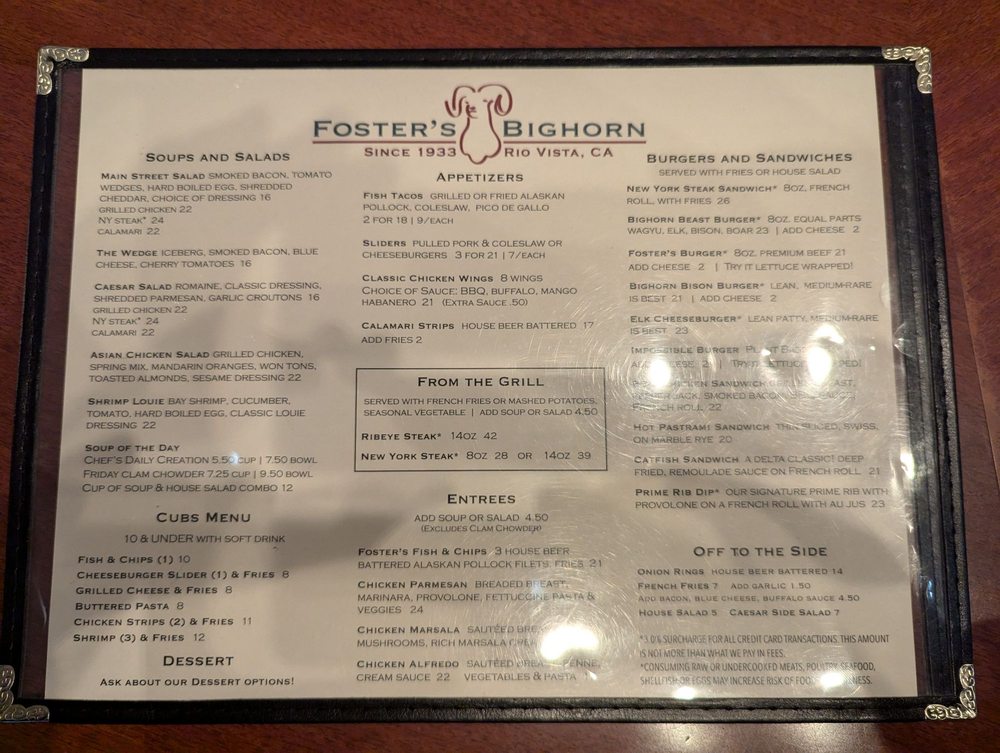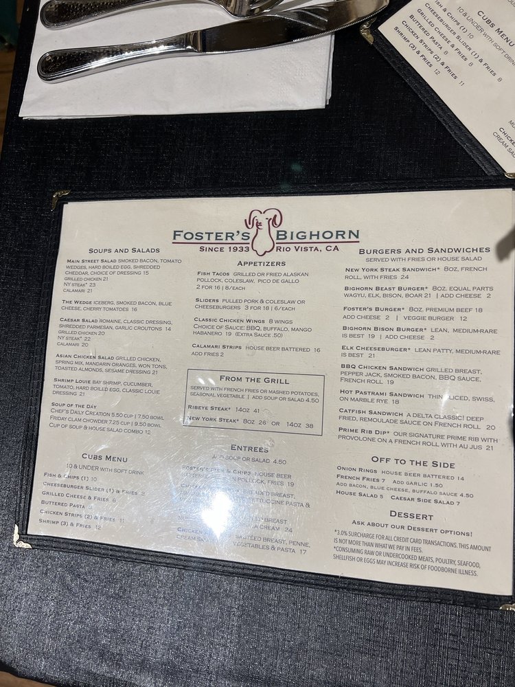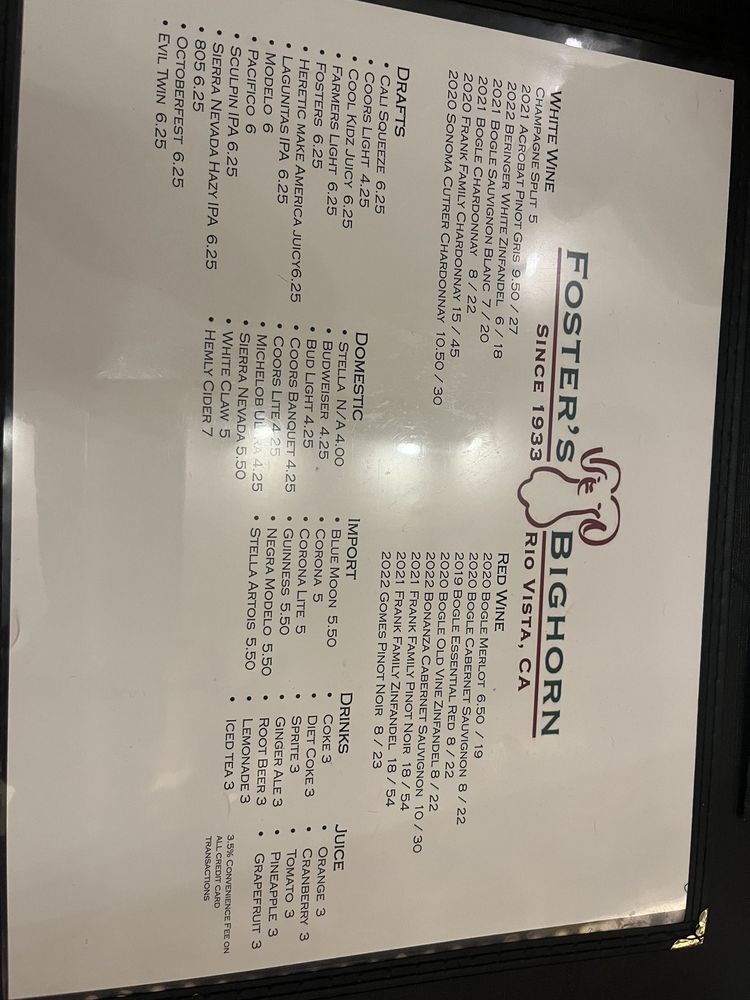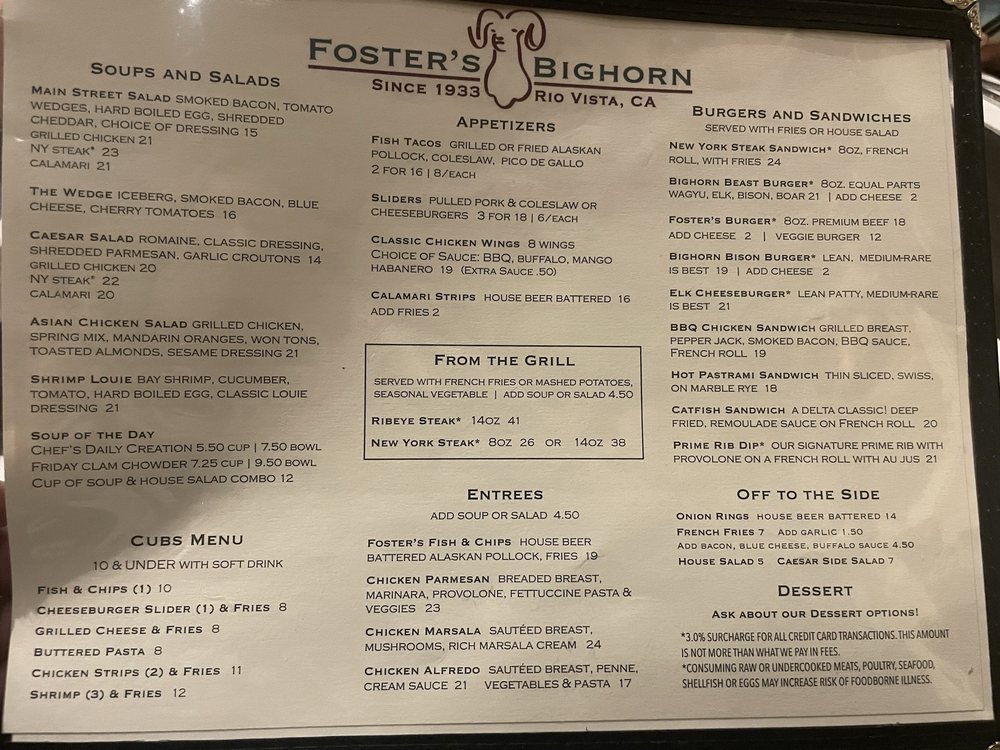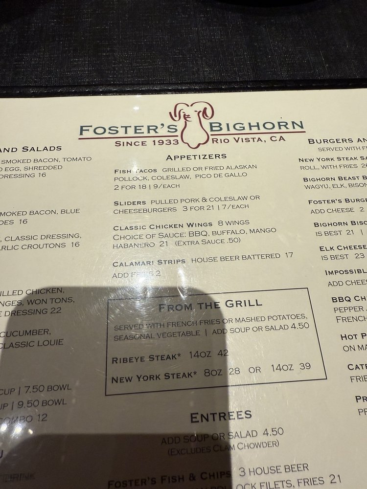 Foster’s Bighorn Menu