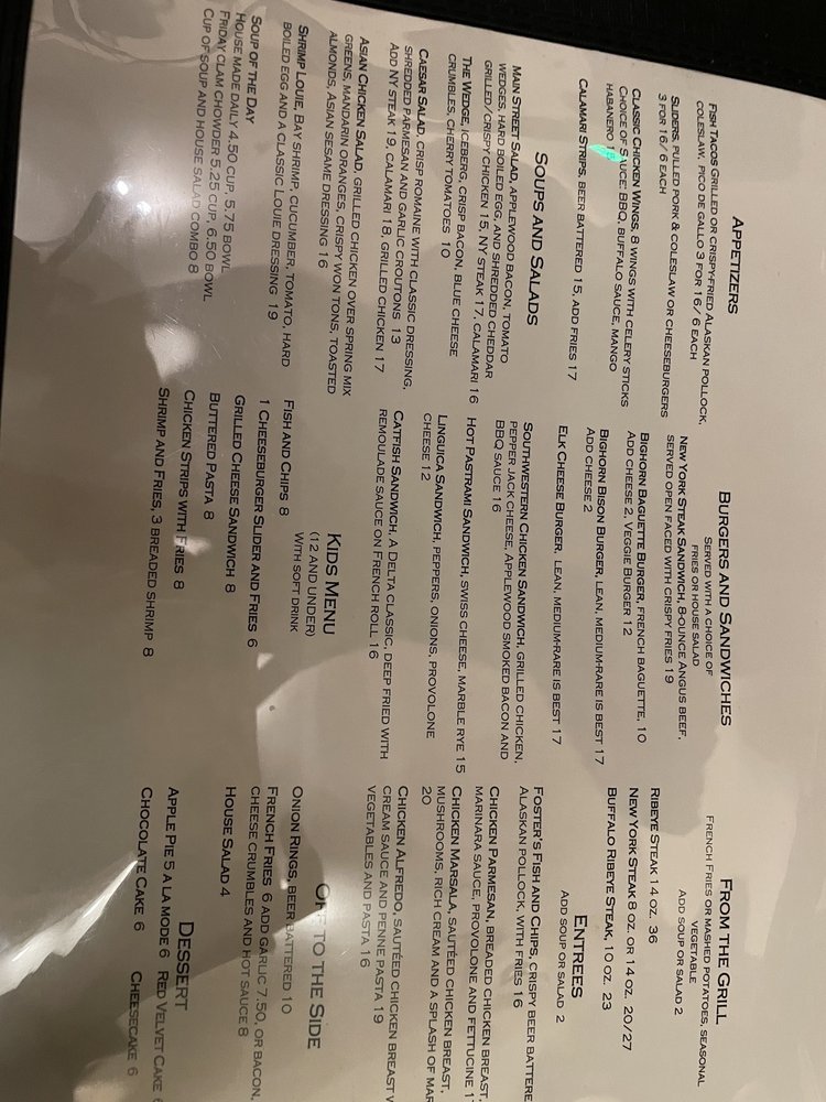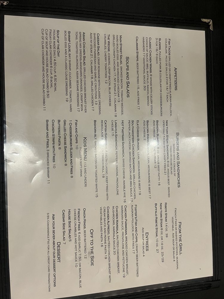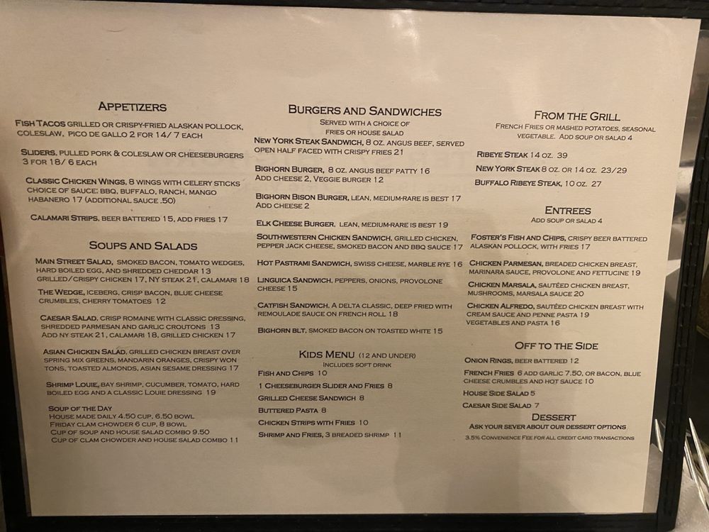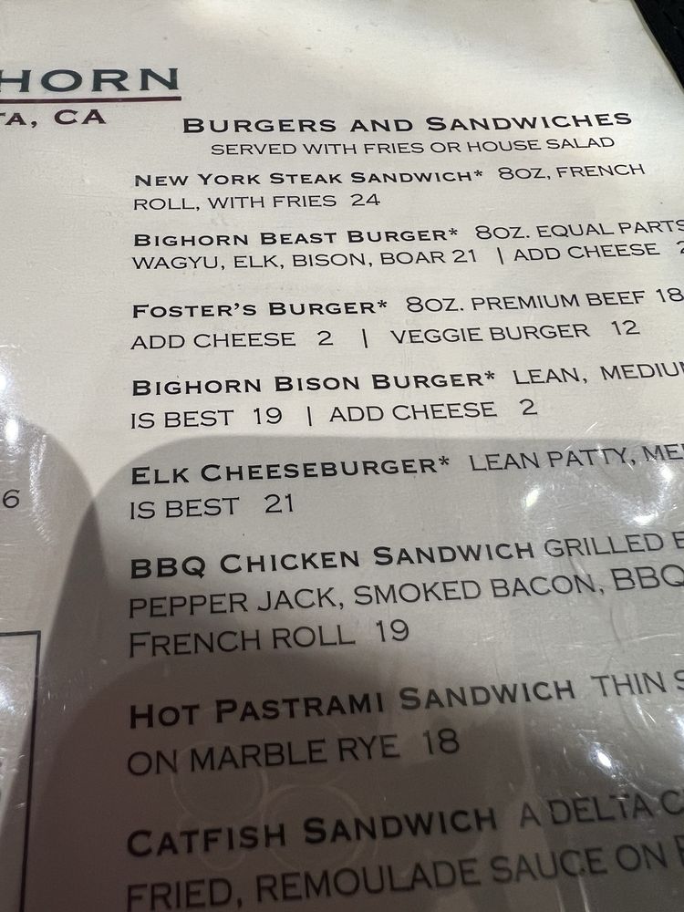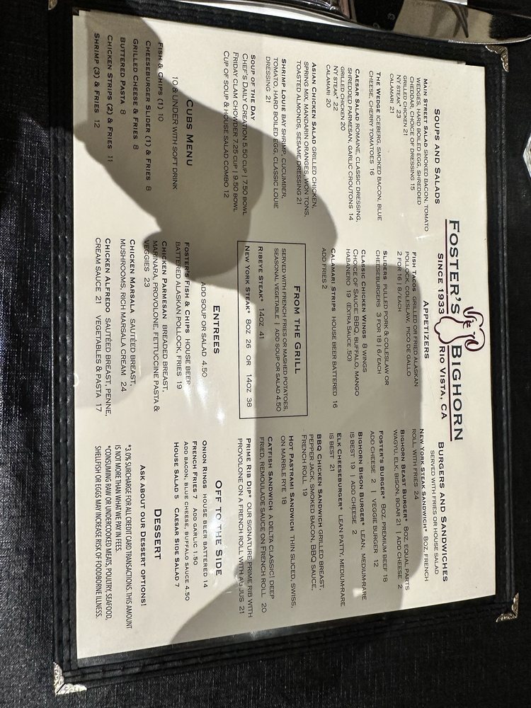 Foster’s Bighorn Menu